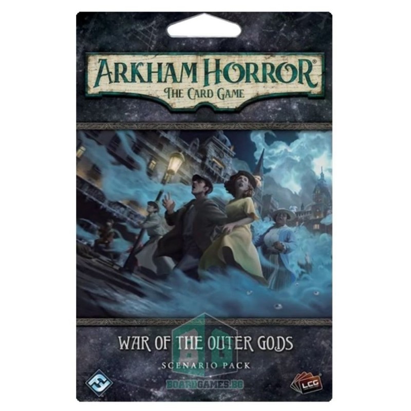 In War of the Outer Gods, a new scenario pack for Arkham Horror: The Card Game, Arkham is caught in the midst of a world-shattering conflict between three rival cults, raging across all of North America. Each of these cults seeks to summon its own Ancient One—and as they battle each other across the continent, every enemy slain brings one of these dark gods closer to awakening. Can you and your fellow investigators survive being caught in the middle of this war, or will our world be torn asunder?