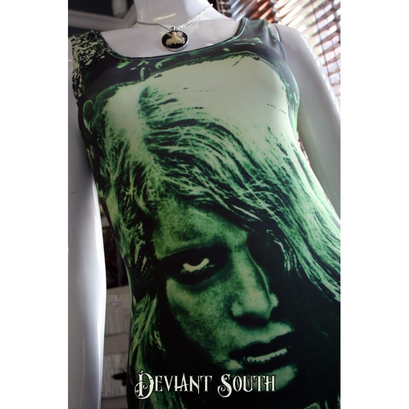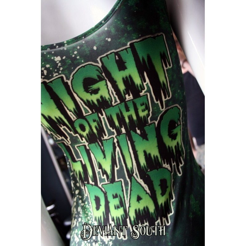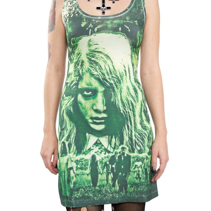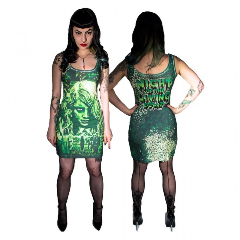 They're coming to get you Barbara. Figure hugging sublimated Night Of The Living Dead tank dress. 95% polyester 5% spandex.